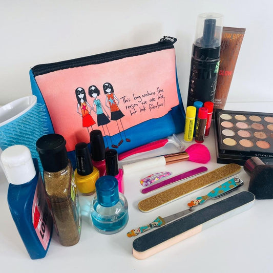 'This bag contains the reason we are late, but look fabulous' Cosmetic Bags (2 sizes)
