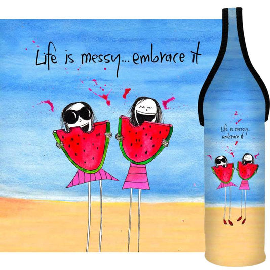 'Life is messy, embrace it' - Wine Bottle Cooler