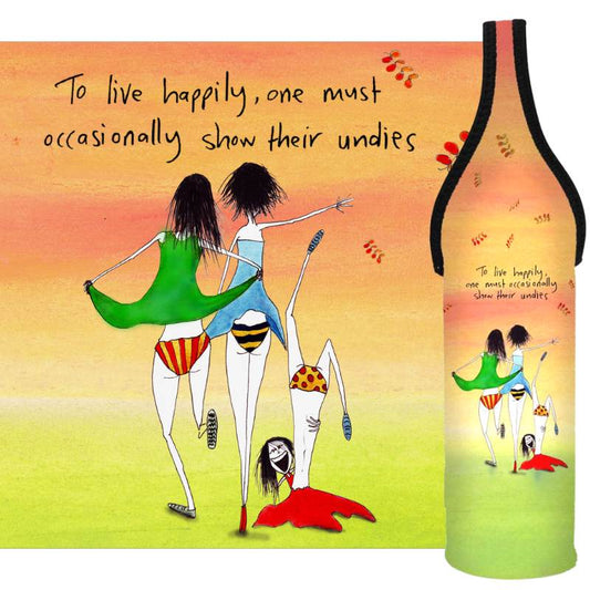 'To live happily, one must occasionally show their undies' - Wine Bottle Cooler