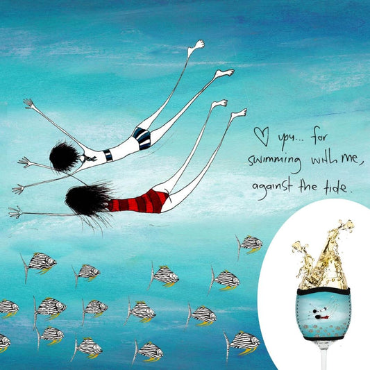 'Love you, for swimming with me, against the tide'- Wine Glass Cooler