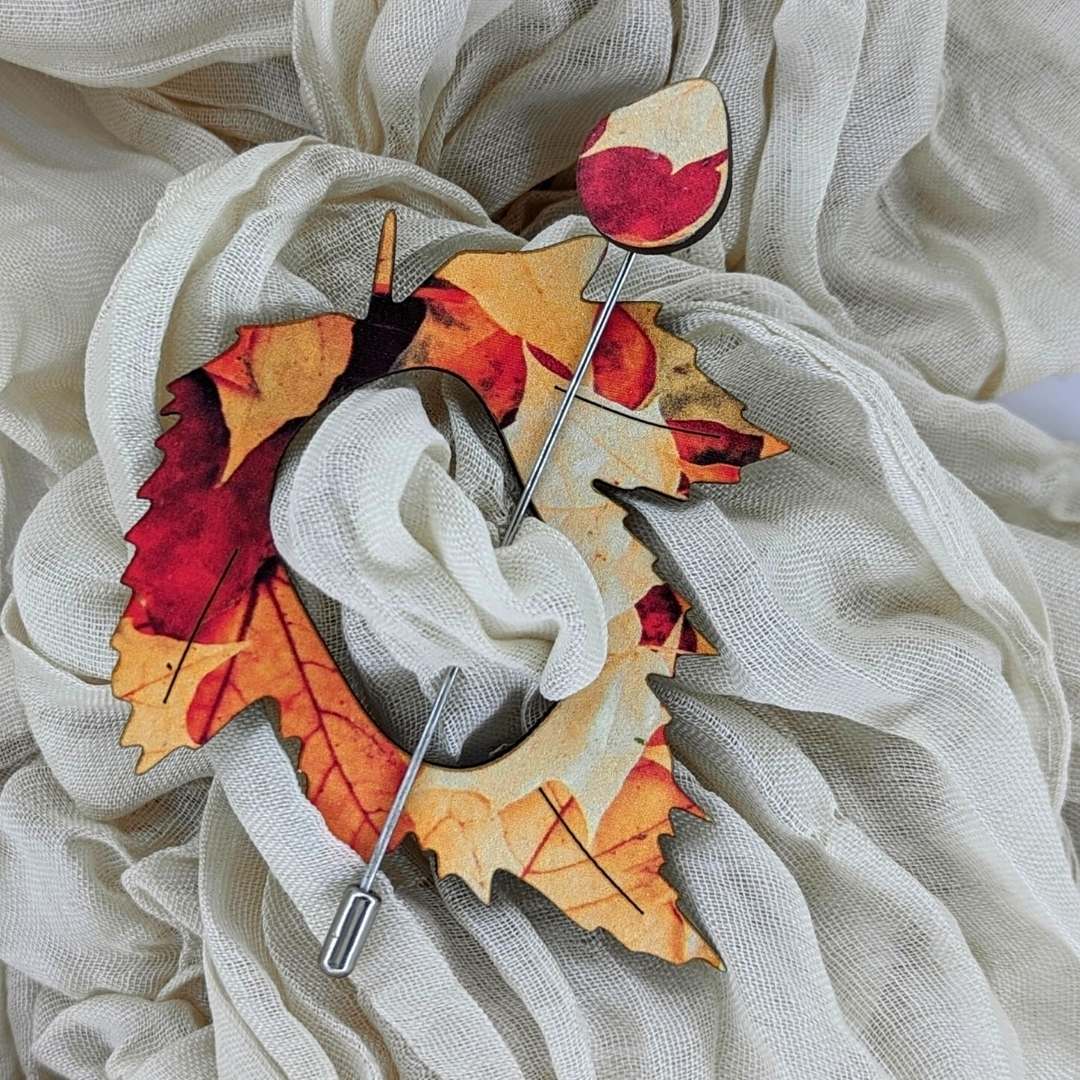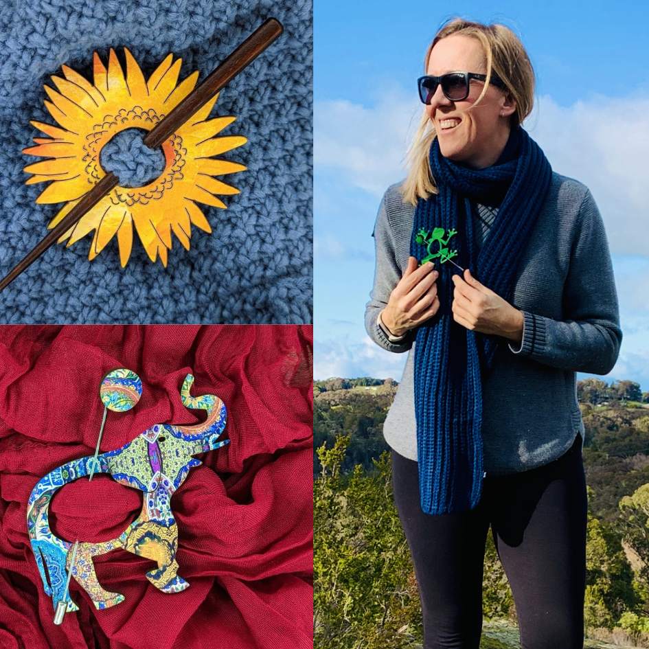 Each Scarf Pin includes the laser cut shape & two versatile pins: a durable wooden pin, perfect for securing woolen scarves, and a sleek metal pin, designed to delicately fasten fine fabrics without causing damage.