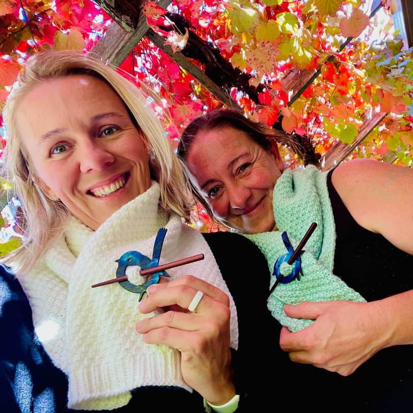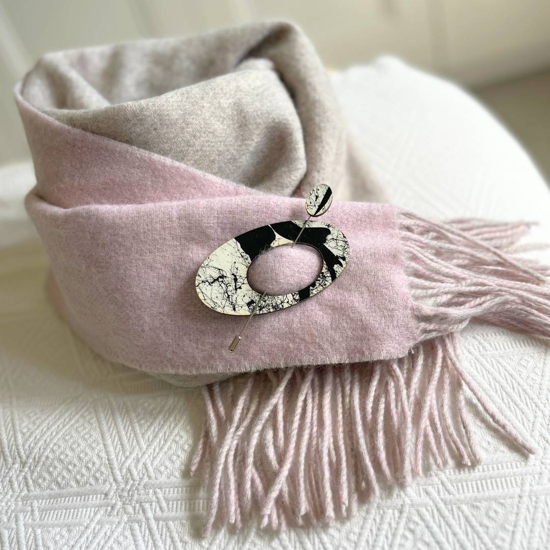 Each piece comes with two interchangeable pins: a sturdy wooden pin for thicker scarves, and a smooth metal pin for finer fabrics, so you can wear your favourite scarves comfortably and confidently all year round.